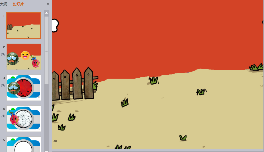 小結(jié):這是西瓜大叔的肚子,西瓜大叔的肚子里紅紅的還有一粒一粒黑色的籽。