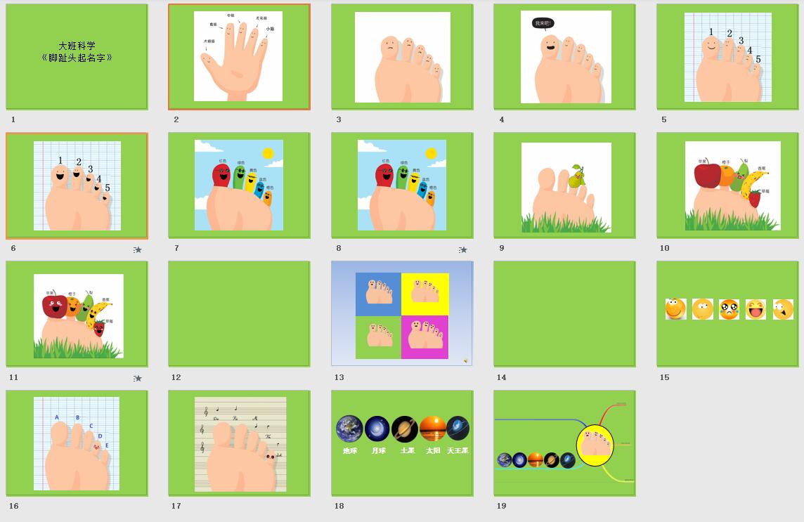 (PPT:腳趾頭自我介紹,我是1、我是2……,為后面幼兒起名字鋪墊)