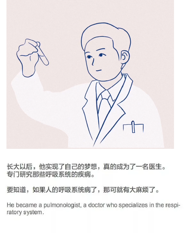 長大以后,他實現了自己的夢想,真的成為了一名醫生。專門研究那些呼吸系統的疾病。